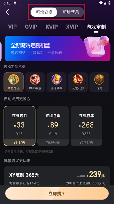 3、版本选择好之后,则需要进行vip种类的选择,点击对应的vip即可;