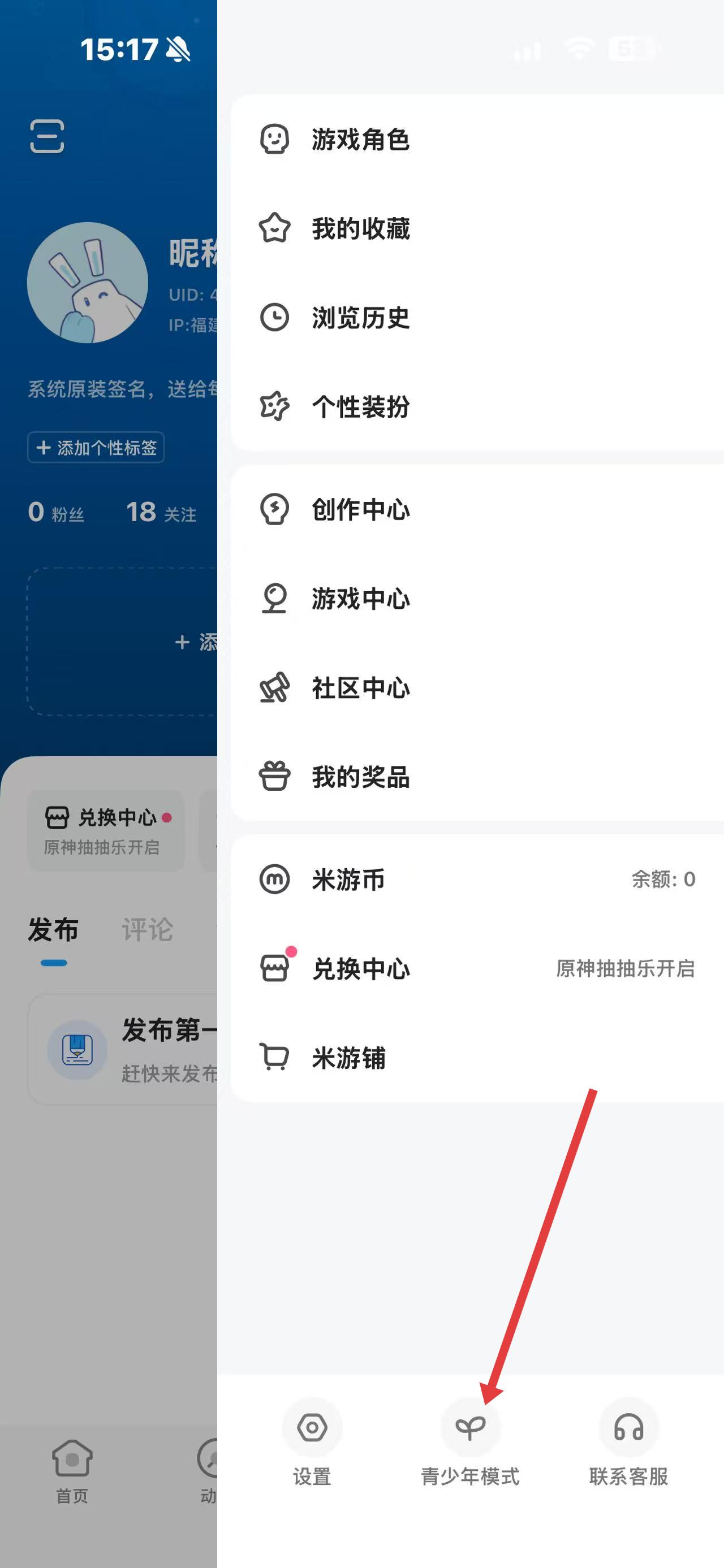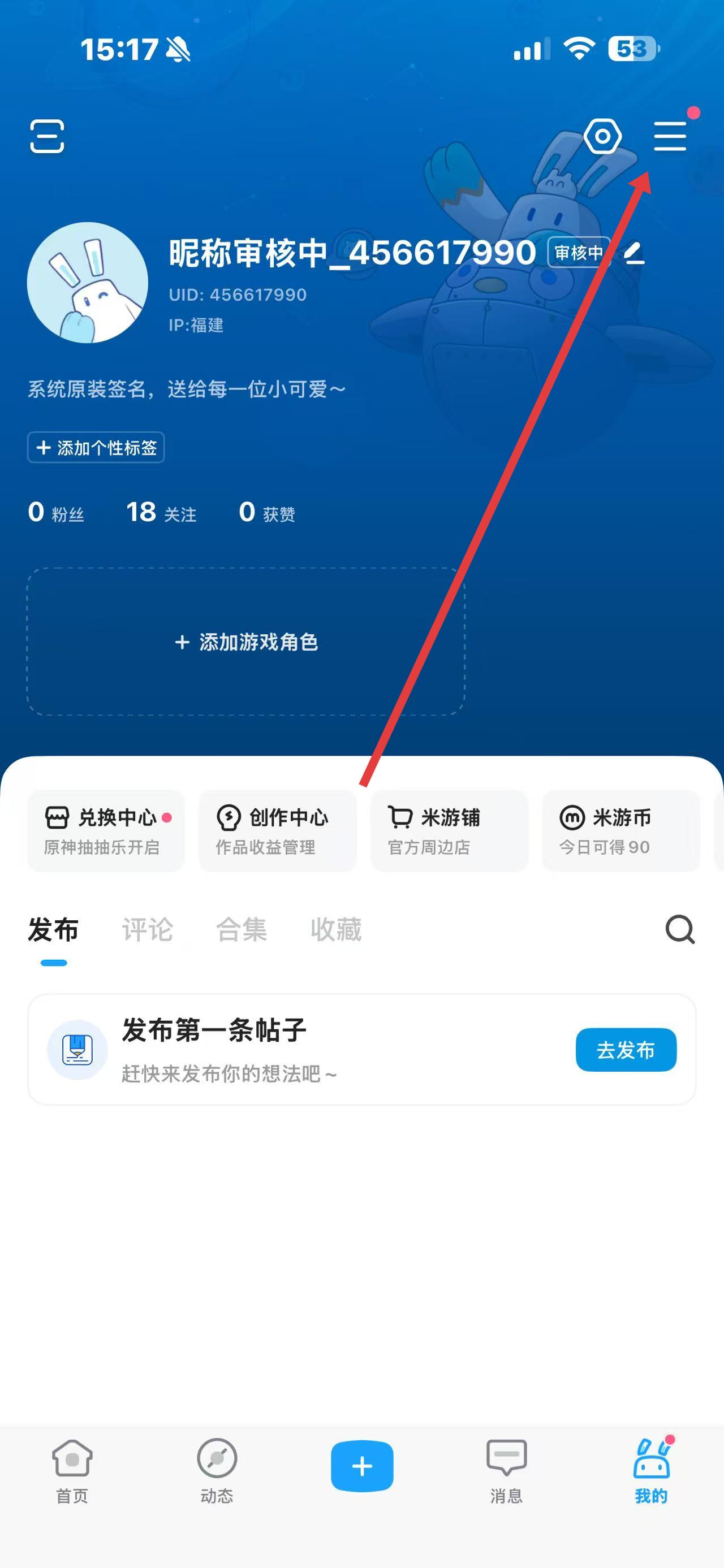 1、打开米哈游app,点击底部导航栏中我的选项,进入个人页面。