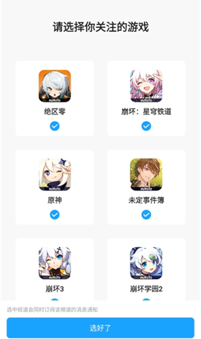 2、然后选择自己比较关注的游戏,也可以全部不选这个是看自己的选择的;