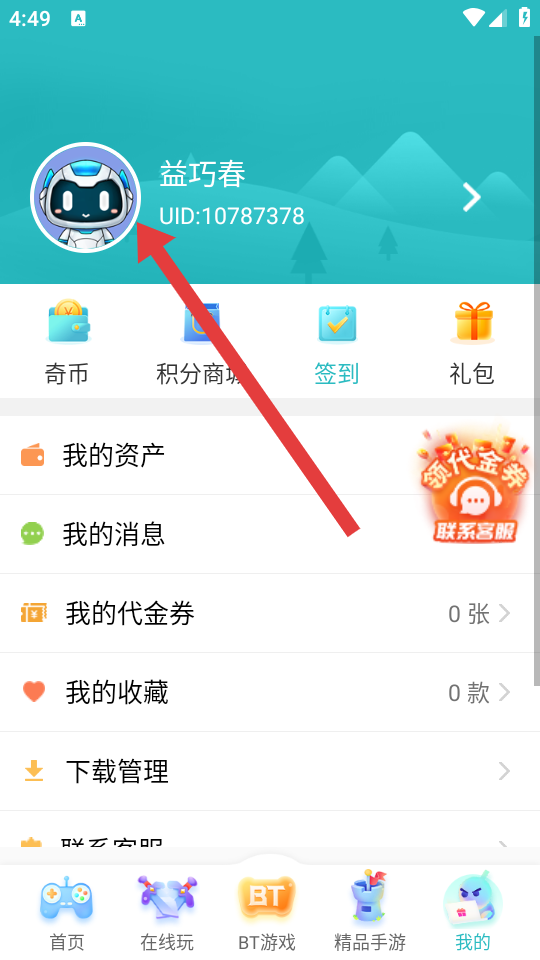 1、在7723游戏盒首页底部导航栏,点击最右侧的我的,进入个人中心页面。