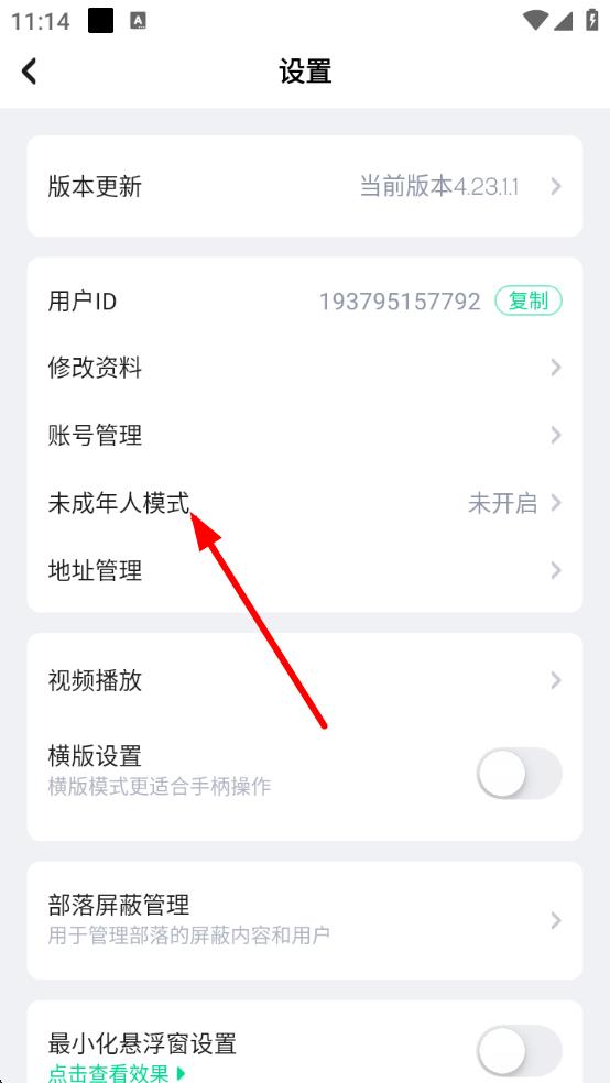 3、在设置界面里,找到未成年人模式选项并点击,按照提示操作即可开启未成年模式。
