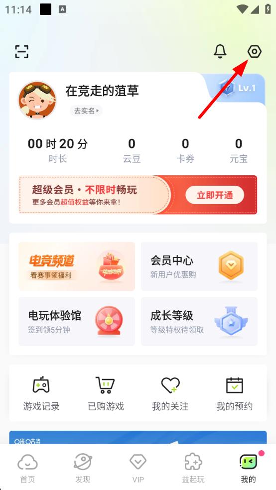 1、打开咪咕快游APP,点击底部导航栏中我的,进入个人页面。