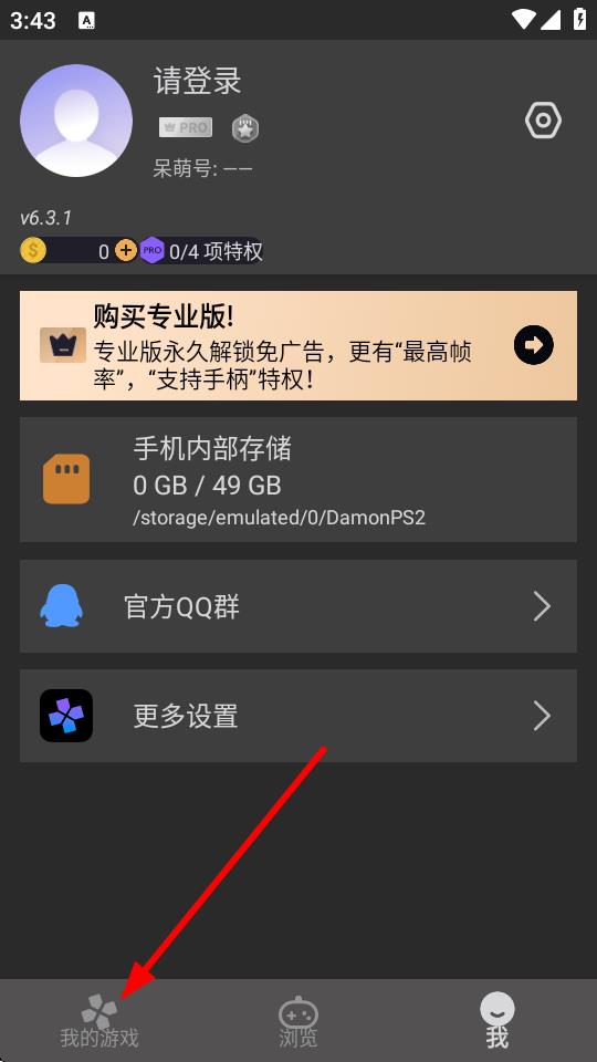 1、打开呆萌PS2模拟器,点击底部我的游戏选项,进入游戏相关界面。