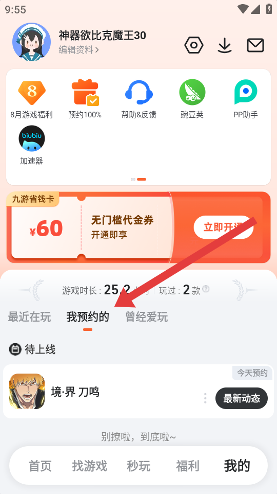 3、若需查看已预约游戏,可以进入我的页面,点击我预约的标签,即可看到所有已预约游戏。