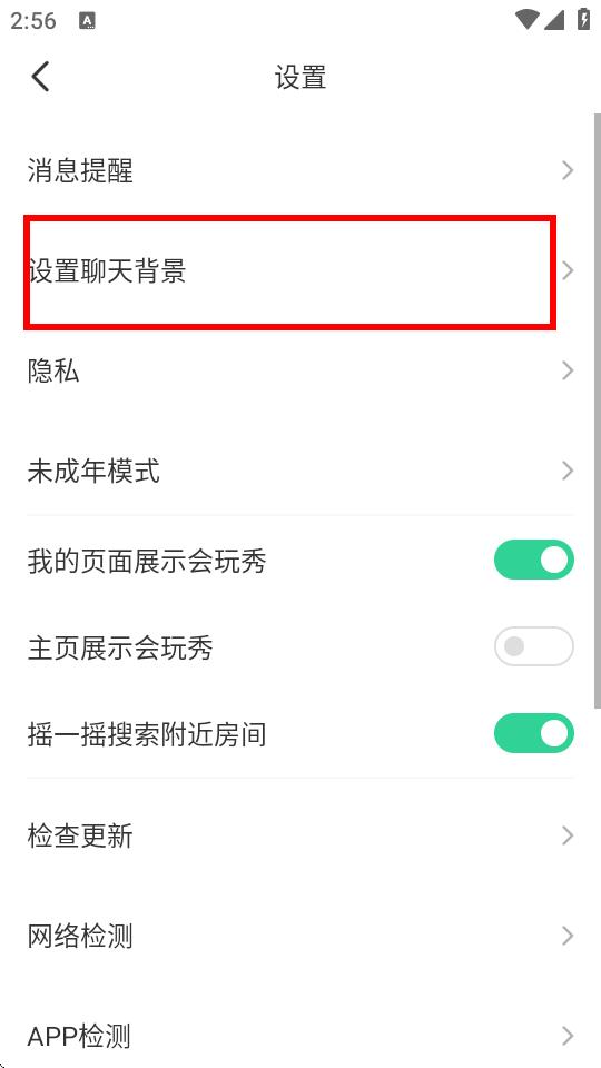 3、在设置页面中,点击设置聊天背景选项。