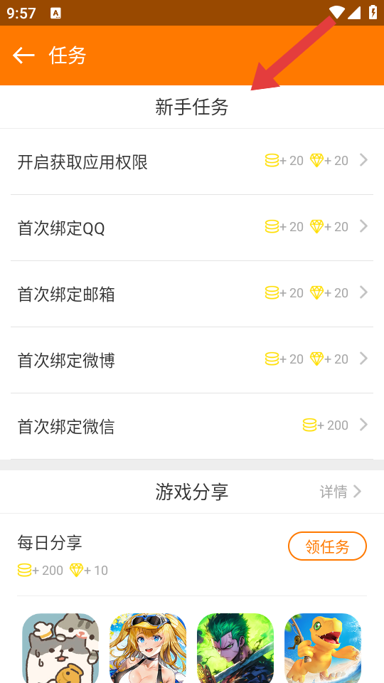 3、返回当乐进入赏金任务页面,查看新手任务,完成如开启获取应用权限等任务,可以获取相应乐豆奖励。