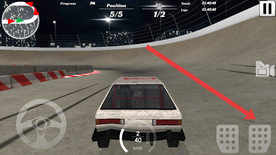 1、在赛车行驶过程中,点击箭头指向的右侧操作按钮,可控制赛车加速,助力赛车在赛道上快速前进,提升比赛中的速度优势。