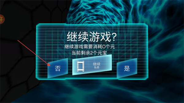 3、若失败弹出继续游戏?弹窗,可选择否结束当前局。
