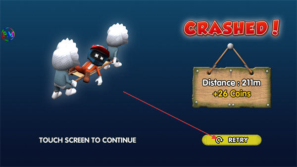 4、若赛车坠毁显示CRASHED!,点击RETRY重新开始挑战。