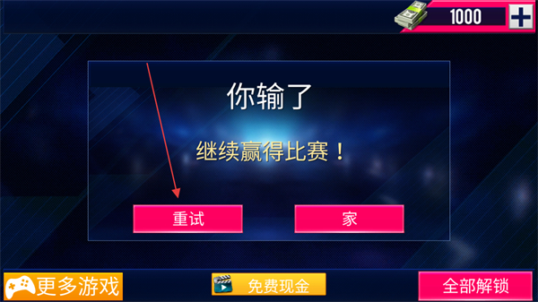 4、比赛失败显示你输了,点击重试可重新开始比赛,继续挑战。