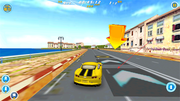 4、跟随赛道箭头指示行驶,调整赛车方向,按路线推进赛程。