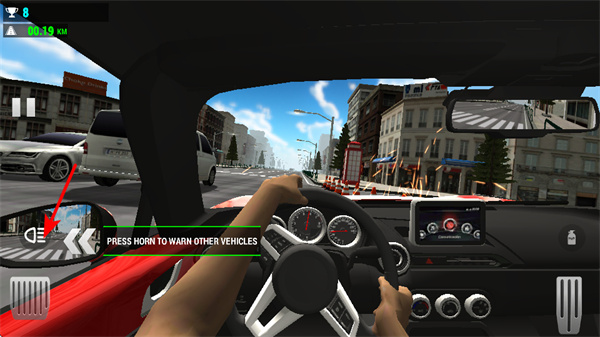 3、遇到路况复杂或需警示其他车辆时,按压喇叭键,这是提醒周边车辆的关键步骤,可避免剐蹭等事故发生。