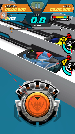 3、进入比赛界面后,点击界面中的橙色按钮,即可启动四驱车比赛,开启当前回合的竞速流程。
