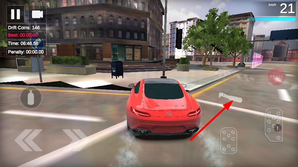 1、点击右侧油门按键,可提升车辆行驶速度,在城市道路上快速前进,为漂移和竞速积累动力。