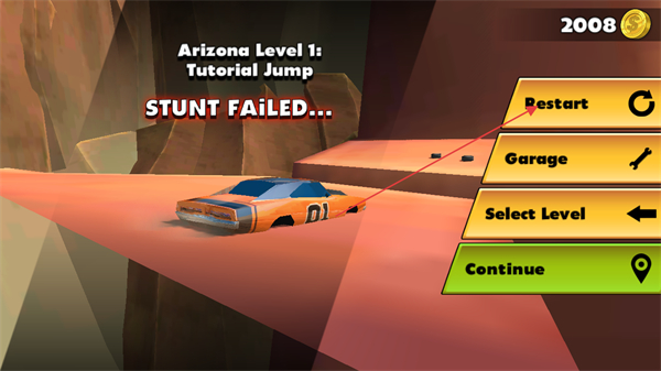 4、若特技失败,可点击Restart重新开始挑战,不断尝试直到完成关卡特技任务。