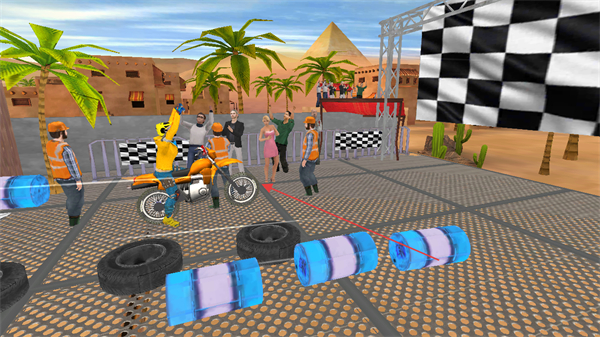 1、点击开始按钮,驾驶摩托车在沙漠特技赛道行驶,利用左右转向按钮控制方向,冲过起点。