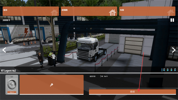 3、处于经销商与车库界面,可以购买选择车辆进行使用,点击界面中的继续按钮可进入后续的游戏流程。