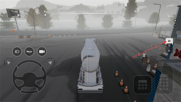 4、这是游戏的驾驶操作界面,选择D档可控制车辆进入前进状态,搭配方向盘等控件可完成卡车的驾驶操作。