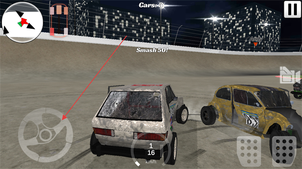 1、操控方向盘移动车辆,主动撞击敌方车辆,削减其耐久度,直至摧毁目标如摧毁Rusty。