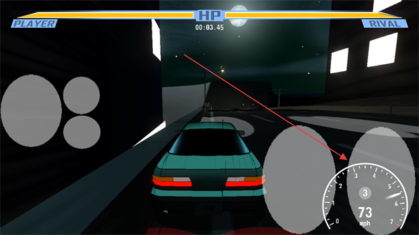 2、调整右侧仪表提升车速如到73mph,在隧道中保持行驶,紧盯对手车。