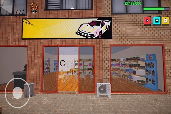 3、细节还原增强沉浸感:跑车模型的细节刻画逼真,近距离观察时能清晰看到车身纹理、车灯设计等细节;店铺场景的布置也贴近真实车模店氛围,从货架到装饰都充满代入感。