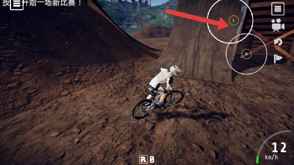 2、当需要调整骑行方向时,点击箭头指向的右侧R按钮,配合其他操作,可改变骑行方向,在场地中灵活穿梭,适应不同地形的骑行需求。