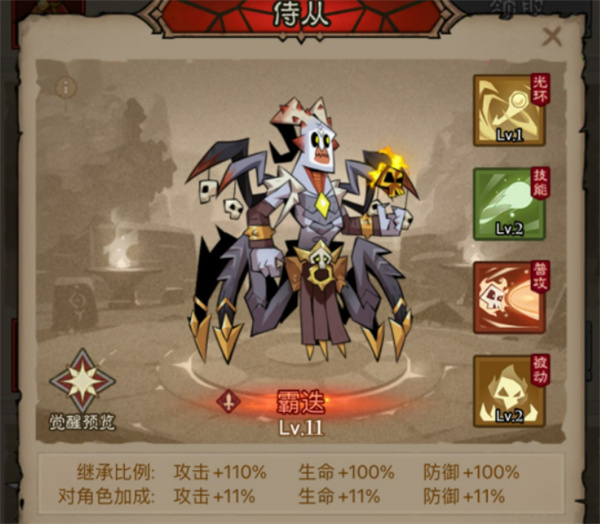 副侍从协同:面山"嘲讽吸引"持续5秒,冷却8秒,覆盖率62.5%;霸迭"伤害增幅"持续8秒,冷却10秒,覆盖率80%,建议在战斗开始时使用面山技能,然后交替使用墨特。