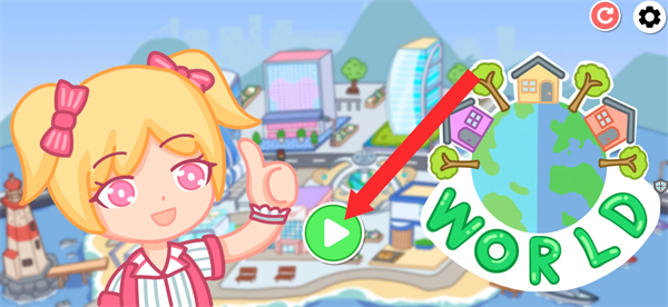 1、进入游戏的界面后,需要点击绿色播放按钮开启乐园冒险,准确点击才能解锁城市场景、互动元素等玩法区域。