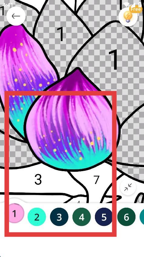 2、按照图案下方的数字对应颜色,点击相应区域完成填色操作。