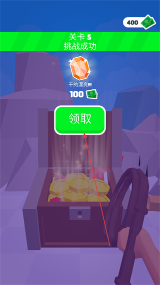 4、关卡5挑战成功后,点击“领取”按钮,获得钻石和金币奖励。