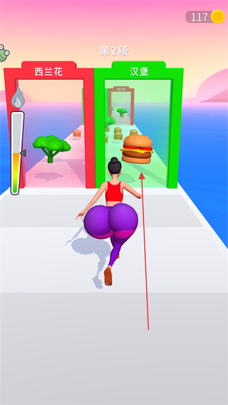 2、操控角色选择进入汉堡通道,收集汉堡使体型变大。