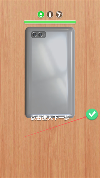 1、使用工具清洁手机壳表面,完成后点击绿色对勾进入下一步。