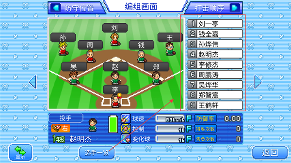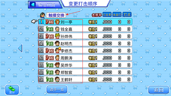 4、进入变更打击顺序界面,通过触摸交换调整击球位次,优化进攻节奏,调整后点返回确认阵容。