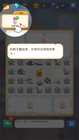 3、将瓶子翻出,获取对应的奶瓶道具,完成合成步骤。