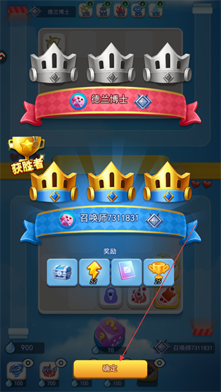 4、击败对手后,点击确定领取奖励如宝箱、金币,提升自身实力。