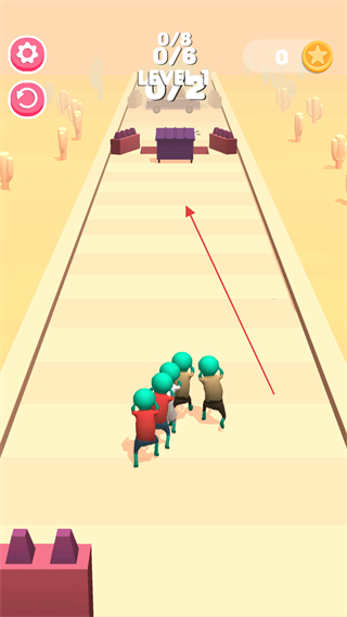 2、进入LEVEL2,带领壮大的人群冲向紫色障碍物,突破关卡。