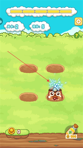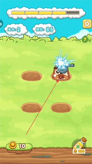 1、在关卡2中,及时点击钻出的地鼠,每次击中可获得分数,积累得分。