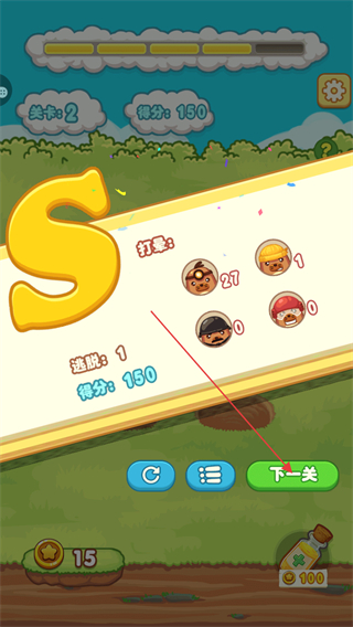 4、当得分达到关卡目标后,即可获得S级评价,点击下一关继续挑战。