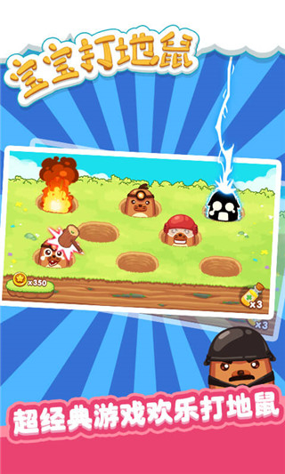 画面色彩鲜艳柔和,地鼠形象Q萌可爱,操作仅需简单点击,无复杂规则与难度门槛,完全贴合低龄宝宝的认知水平与操作习惯。