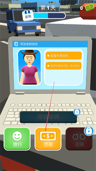 针对不同违规情况提供多样处置方式,可根据实际场景选择罚款或逮捕,灵活应对不配合工作的司机,让执法过程更具策略性与互动性。