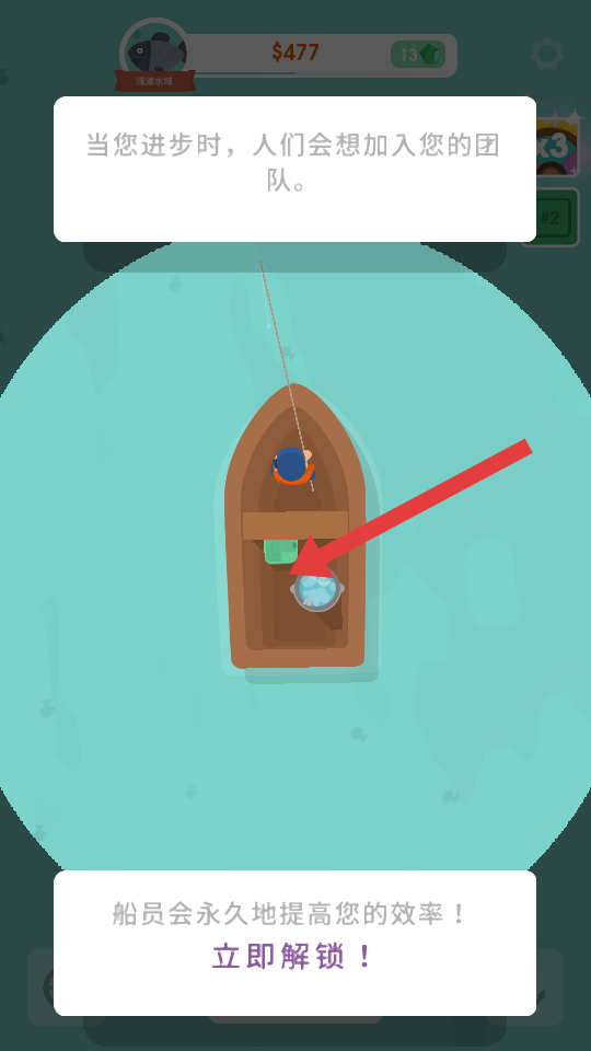 4、完成抓到25条鱼等基础钓鱼任务后,会获得任务奖励,优先用奖励升级渔船或解锁新的钓鱼场景。