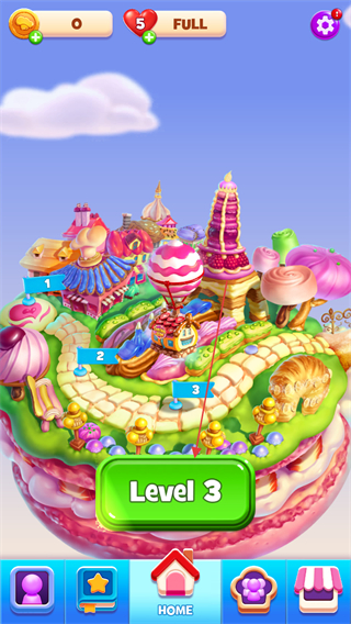 1、进入LEVEL3关卡,查看界面显示的爱心与金币状态,点击绿色按钮开始关卡。