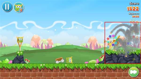3、控制发射出的怪物命中目标,比如场景里的物品和其他怪物,以此积累游戏分数。