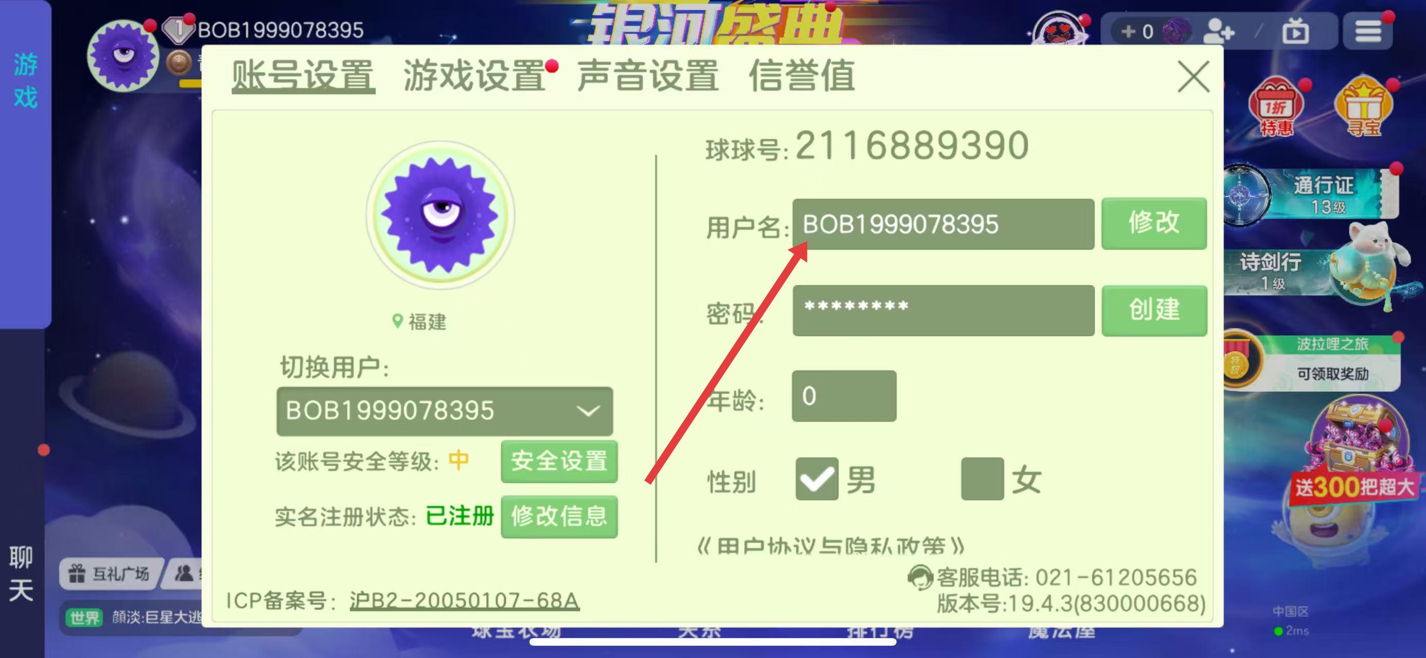 3、在账号设置界面里,找到用户名一栏,点击其右侧的修改按钮,输入想要更改的新名字,完成后确认修改,即可成功更改游戏内的名字。