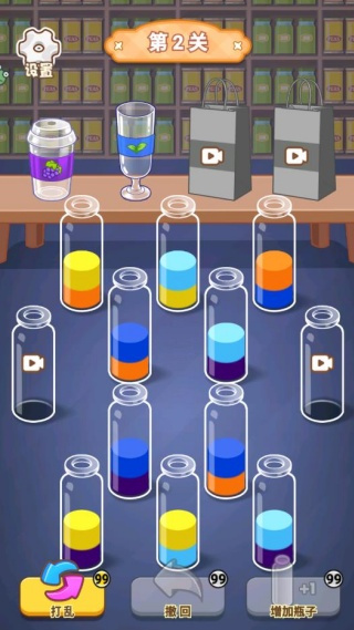 注意观察液体颜色深浅变化,部分关卡中相同颜色但浓度不同的液体不可混合,细致观察是成功排序的关键。