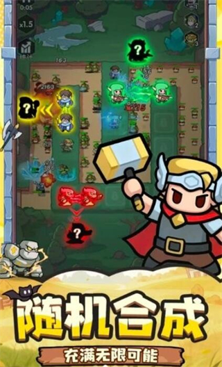4、将相同英雄拖拽到一起可合成新的随机英雄,合成后英雄战力大幅提升,建议在怪物波次间隙进行合成以优化阵容。