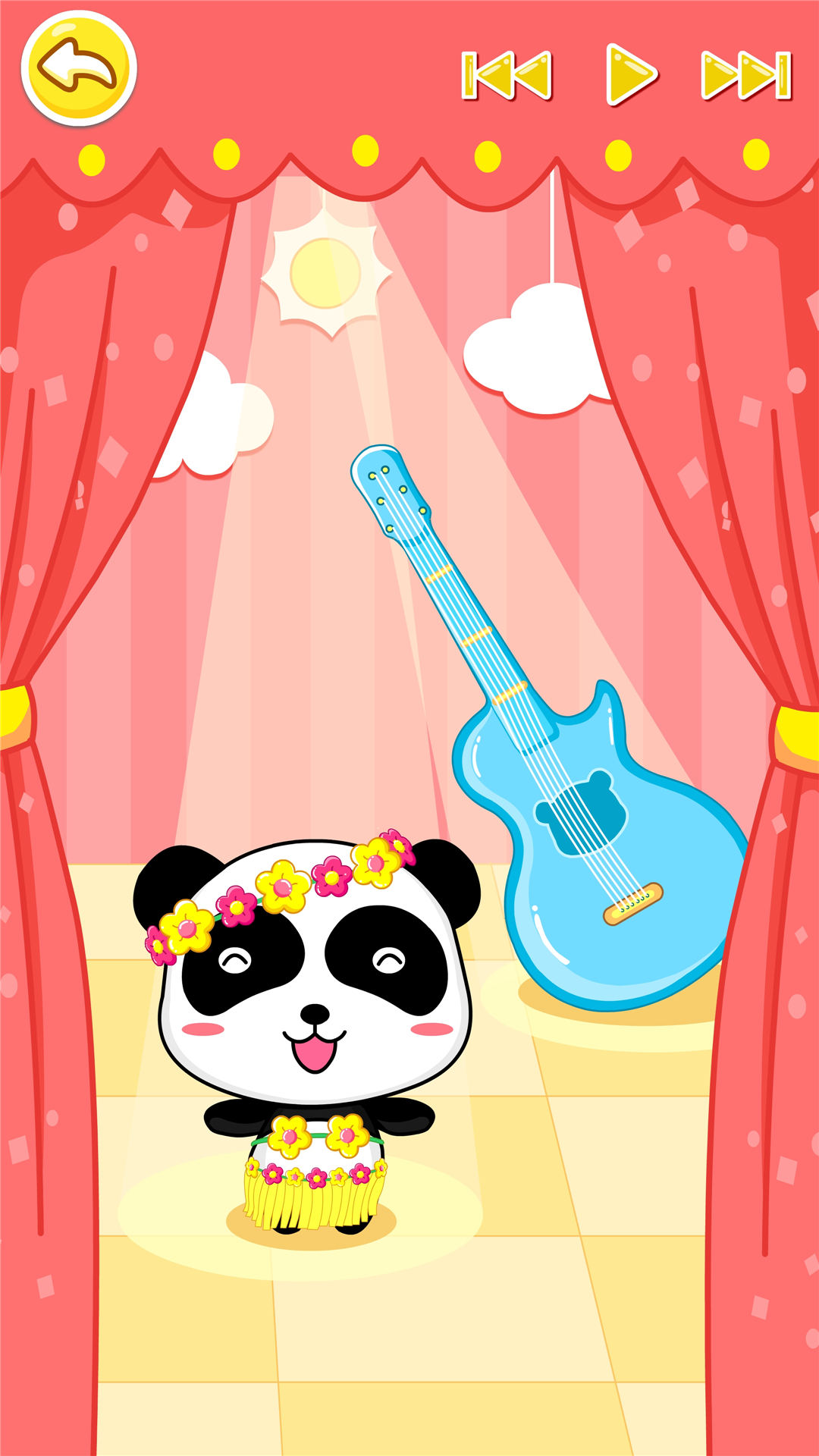 吉他:炫丽的舞台上,小熊猫随着音乐翩翩起舞,点击舞台上方的装饰物,让你惊喜连连!