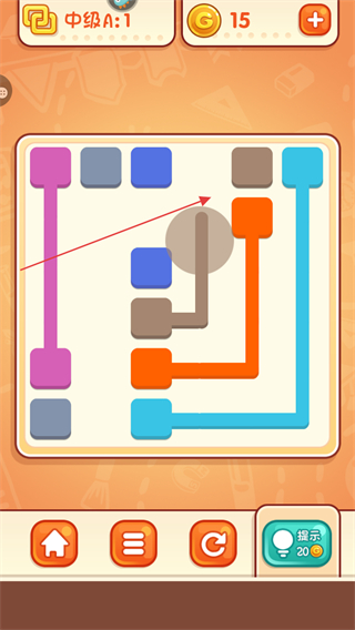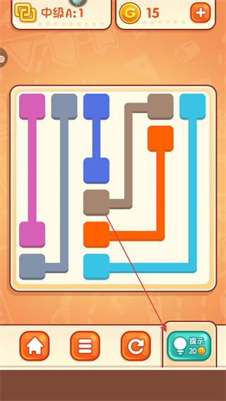 4、若遇困难,点击提示按钮,消耗金币获取连线提示,助力通关。