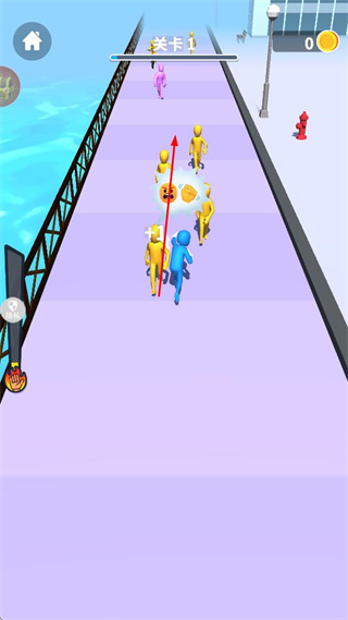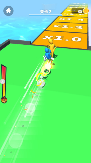 2、移动过程中接触黄色角色,触发互动效果,持续推进角色在赛道上的行进进度。