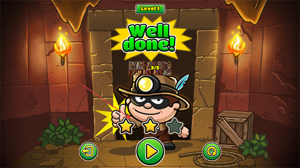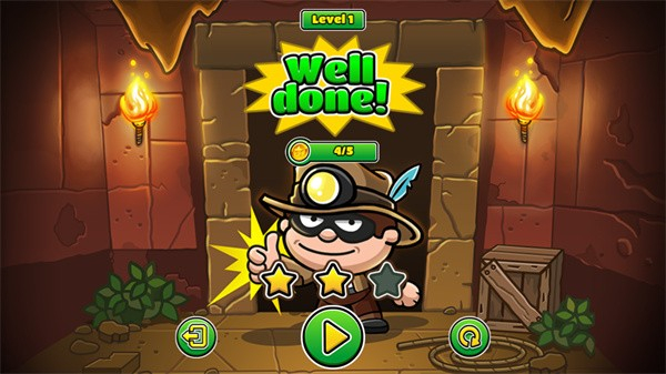 4、控制角色解开右下角的逃生通道进行逃离,根据通关用时和金币获取数量进行星级评定。